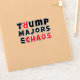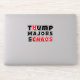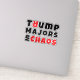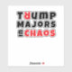 "Trump : un maître du chaos" sur un autocollant à la typographie rouge et noire audacieuse. Le design présente "Trump Majors In Chaos" en évidence dans un schéma de couleurs rouge et noir, mettant l'accent sur les tendances chaotiques perçues du sujet.