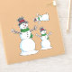Un bonhomme de neige à l'allure joyeuse mais froide porte un chapeau haut à ruban rouge et une écharpe verte sur cette illustration hivernale de Richard H. Fay.