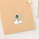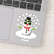 Unique sticker personnalisé faux scintille pour la décoration, l'artisanat, les célébrations.. Illustration hivernale d'un bonhomme de neige cool avec des flocons de neige, des lunettes de soleil et des gants verts, un foulard rouge et un chapeau de dessus noir.