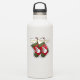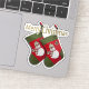 Ce modèle autocollant de Noël présente une photographie en double d'un bas rouge et vert avec un bonhomme de neige adorable habillé d'un foulard et d'un casquette en plaid de saison placé sur un arrière - plan vert.