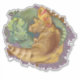 Deux Tricératops se bousculent dans un nid de feuilles, l'art de dinosaures adorable pour la décoration et le plaisir pour les amateurs de toutes choses préhistoriques. Grande embellie pour les ordinateurs portables et les téléphones, ou vraiment tout ce que votre imagination peut imaginer pour les coller !