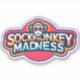 Coloré et amusant Sock Monkey Madness logo Sticker.