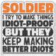 Un Soldat Drôle Dit "Soldat J'Essaie De Faire Des Choses Une Preuve Idiot Mais Ils Continuent À Faire De Meilleurs Idiots". Prenez ce design de Soldat Amusant comme un cadeau amusant pour une maman, un papa ou un ami génial.