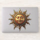 Le visage serein d'un soleil doré stylisé.
