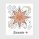 Embrassez la beauté céleste du soleil et de la lune avec cet autocollant vinyle enchanteur. Avec un design fantaisiste représentant un soleil endormi, des croissants de lune et des étoiles scintillantes, cet autocollant ajoute une touche de magie à n'importe quelle surface. Parfait pour les ordinateurs portables, les bouteilles d'eau, les journaux et plus encore.