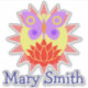 Représentation colorée du soleil, papillon et fleur vue par les yeux d'un amoureux de la nature. Mots personnalisables tels que noms et slogans.