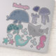 Sous la feuille d'autocollants sur le thème de la mer, on trouve une baleine, un requin, une gelée, une tortue de mer et un hippocampe. Personnalisé avec le nom de votre enfant.