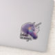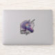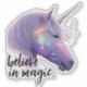 Une licorne violette brillante translucide regale possède une corne blanche et des amas d'arc-en-ciel colorés sur le visage. Conçu pour les amateurs de licorne, les amateurs d'imaginaires et tous ceux qui adores les vibrations éthérées. Sticker présente la citation "croire en la magie". Parfait comme un cadeau, aux accessoires et décorer avec magie.