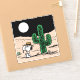 Regardez Spike assis à côté d'un cactus dans le désert la nuit.