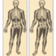 Illustration squelette vintage dans les couleurs vieilles du ton sépia brun, noir et doré. Whimsical et unique. Image médicale amusante.