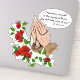 Ce bel autocollant de contour présente une image catholique traditionnelle de mains en prière tenant le chapelet avec des roses rouges et une citation de Saint Padre Pio. Tout le texte et les polices peuvent être modifiés.