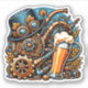 Steampunk Oktoberfest design avec casquette alpin avec lunettes, bière, blé et engrenages.