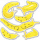 Cette feuille d'autocollants de contour ou découpés en dés comporte six autocollants en forme de limaces de banane dans un jaune ensoleillé.