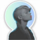 A grayscale portrait of a woman with short, styled hair and a braid. She wears a dark jacket and necklaces. The background is a soft, pastel-toned circle. The womans expression is serene, creating a calm atmosphere. The style is digital art.