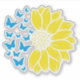 Sticker Sunflower and butterflies. Ukrainian flag colours.