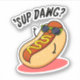 Sup Dawg Funny Hot Dog Pun présente un cool à l'allure mignonne dans ses lunettes de soleil en vous saluant avec un sup dawg. Funny Pun cadeau pour la famille et les amis qui aiment les puns hot dog.