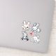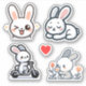 Extraordinaire feuille autocollante avec un super mignon lapin dans quatre situations différentes, clignotant, dormir, monter un scooter et sentir une fleur. Restez autour et répandez la joie.