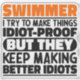 Drôle Swimmer Dit "Swimmer J'Essaie De Faire Des Choses Idiot Preuve Mais Ils Continuent À Faire De Meilleurs Idiots". Prenez ce design Funny Swimmer comme un cadeau amusant pour une maman, un père ou un ami génial.