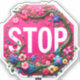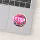 Cet autocollant est muni d'un panneau d'arrêt artistique.
