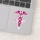 Une vignette en vinyle avec un symbole de caducée rouge stylisé avec les lettres R N de chaque côté. Parfait pour les infirmières autorisées.
