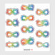 Le pack de 12 autocollants comprend le panneau d'infini arc-en-ciel, orné de fleurs, de feuilles, de vignes, d'un coeur et d'un papillon. Le spectre complet des couleurs représente la diversité du spectre de l'autisme ainsi que le mouvement plus large de la neurodiversité.