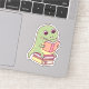 Un gribouillis d'un T-rex dinosaure mignon lisant et appréciant un livre tout en étant assis sur des livres. Parfait pour les dinosaures qui aiment lire ! ♥