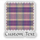 Échantillon d'échantillon violet, jaune doré et bleu tartan. Texte personnalisé.