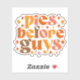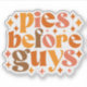 Ce design amusant et décalé à thème de chute comprend l'expression ludique "Pies avant les gars" dans une police audacieuse et d'inspiration rétro. Le texte est disposé dans une mise en page compacte et empilée avec chaque mot dans un style de police différent, créant une composition dynamique et attrayante. La palette de couleurs comprend des teintes automnales chaudes comme des oranges profondes, des marrons riches et des jaunes dorés, capturant parfaitement les ambiances douillettes de la saison.