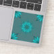 Sticker Teal Leaf Mandala Design on Dark Cyan