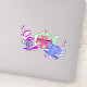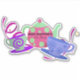 Autocollant vinyle taillé sur mesure avec l'image d'une théière fantaisiste, deux tasses, rubans violets et confettis. Texte facultatif. Voir collant rectangulaire, invitation, enveloppe, confetti, sac de faveur, étiquette cadeau, étiquette et papier d'emballage correspondant. Voir l'ensemble de la collection Wonderland Sticker dans les INVITATIONS | Section Stickers & Étiquettes.