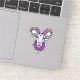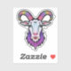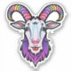 Un autocollant fantaisiste à la tête de chèvre à l'expression ludique, portant un casquette coloré à motifs. Le design accrocheur est composé d'une paire de cornes incurvées, d'une barbe boisée et d'un grain ringard. L'arrière - plan est un dégradé pastel de rose, de violet et de bleu, créant une atmosphère vibrante et joyeuse.