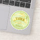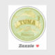 Illustration de style pop-up du couvercle d'une boîte de thon. Il est dessiné dans vectoriel et a l'air d'une affiche publicitaire rétro. Il y a du thon sur lui et est dessiné en temps de vert et de jaune. Un design pour toute personne qui aime le poisson en conserve / en conserve.