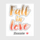 Tombez amoureux de cet autocollant avec une typographie simple et élégante aux couleurs saisonnières familières.