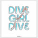 Get these vinyl stickers in die cut shapes for the platform, springboard, starting block diver or fan this Dive Girl Dive slogan design.