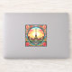 Stickers parisien lumineux Sunset Eifel Tower Paris France Floral Stickers présente un coucher de soleil de style art déco avec la Tour Eiffel dans un cadre fleuri et audacieux. Créé par Evco Studio www.zazzle.com/store/evcostudio
