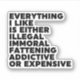 Tout Ce Que J'Aime Est Illégal, Immoral, Engrais, Addictif Ou Coûteux Citation Noir & Blanc Dit Drôle Typographie