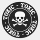 Toxique - autocollant d'avertissement rond avec dessin crâne noir et blanc et croisé.