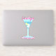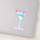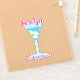 Cet autocollant amusant de contour coupé peut être personnalisé avec votre nom en rose, au-dessus d'un dessin d'un verre de cocktail bleu de gin et tonique avec glace et citron, et les mots "Travailler pour gin".