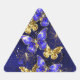 Composition des luxueux papillons saphir et bijoux en or sur arrière - plan bleu texturé.