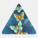 Composition de flying, jewelry, or et dark butterflies on textured jewelry background. Golden butterfly.