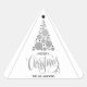 Arbre de Noël à boule d'argent moderne, étoiles et les mots Joyeux Noël en lettres chic, utilisez ces beaux autocollants triangles personnalisés pour donner des cadeaux, enveloppes, faveurs de fête ou toute occasion de Noël.