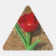 Tulipe rouge et jaune printanière, contre une roche brune au lac Arrowhead. Photo de Sandy Closs. Pâques, floral, fleurs rouges, Printemps, Saint-Valentin, valentines, mariage, mariage, Saint Valentin