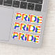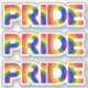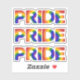 Célébrez votre fierté LGBTQ avec le mot "PRIDE" en caractères gras de couleur arc-en-ciel sur trois autocollants. Autres tailles disponibles dans la barre latérale. Pour voir le design de Pride Rainbow sur d'autres objets, cliquez sur le lien "Rocklawn Arts". numériquement créé une image. Copyright ©Claire E. Skinner, Tous droits réservés.