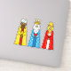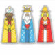 Beau Noël trois rois habillés en turquoise, rouge et jaune.