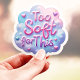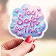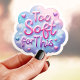 Ajoutez une touche de douceur à votre journée avec cet autocollant Trop Douce Pour Cela Rêveur présentant des nuages pastel, des cœurs et des étincelles. Parfait pour les ordinateurs portables, les agendas, les bouteilles d'eau, les coques de téléphone ou les journaux. Imprimé sur du vinyle de haute qualité avec une finition brillante et durable. Une ambiance douce et délicate pour ceux qui ressentent toutes les émotions. En fait un petit cadeau parfait ou un petit plaisir pour vous-même.