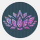 Décorez avec style ces autocollants sereins inspirés de la méditation. Ce design présente un arrière - plan rayé turquoise foncé et un imprimé de fleurs de lotus arc-en-ciel violet. Idéal pour les amateurs de méditation, de yoga et de paisibles styles d'inspiration zen ! Ce design est également disponible sur un carnet, un stylo et un sac fourre-tout.