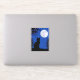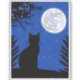 Sticker dans la silhouette d'un chat, regardant une pleine lune dans un ciel étoilé bleu profond