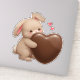 Ce design de Pâques adorable présente un lapin duveteux de couleur pastel tenant un chocolat en forme de cœur avec amour. Il est parfait pour les cadeaux sur le thème de Pâques, les cartes de vœux et les autocollants. Idéal pour tous ceux qui aiment les créations de vacances mignonnes et festives !