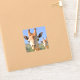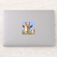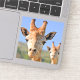 Sticker avec un gros plan de deux visages de girafes douces contre un ciel bleu ensoleillé. Bel article de safari. Photo prise à San Diego, Californie.