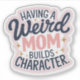Célébrez votre mère excentrique avec cet autocollant amusant et relatable! Avec l'expression "Avoir une maman bizarre construit un personnage" dans un design ludique, cet autocollant est un hommage léger à toutes les mamans qui embrassent leur personnalité unique et rendent la vie plus intéressante. Fabriqué avec du vinyle durable, cet autocollant est parfait pour les ordinateurs portables, les bouteilles d'eau, les journaux, et plus encore.